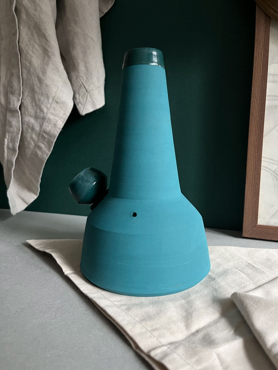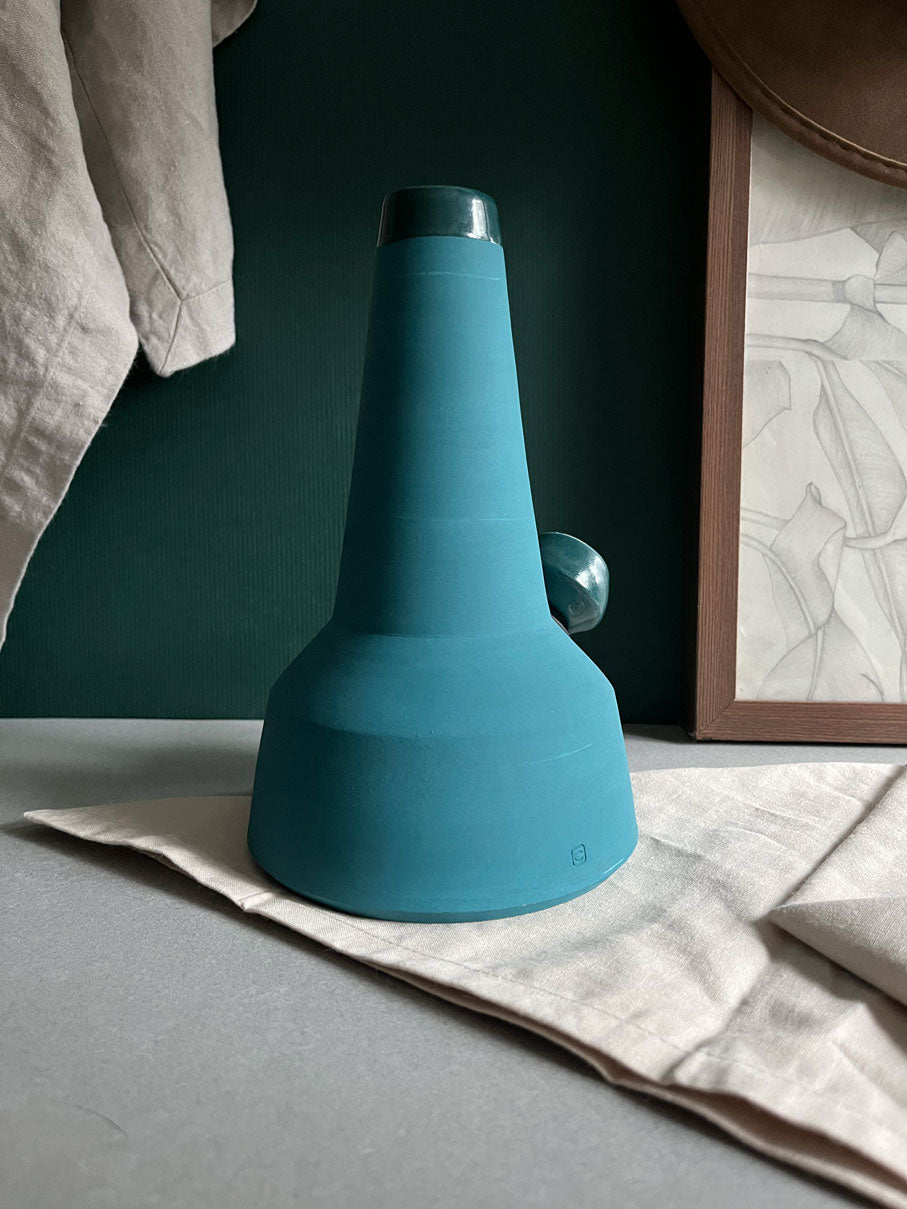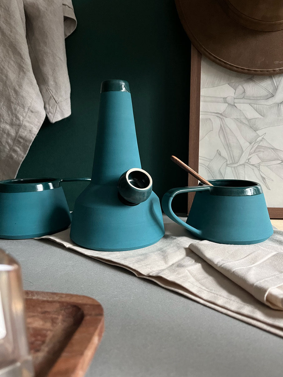 Each one is wheel-thrown and hand-painted in a matte phthalo teal, an intense, blue-green hue reminiscent of deep waters. The interior and rim are finished with a clear glaze, offering a smooth, easy-to-clean surface. As with any individually handcrafted item, there are expected variations in proportions and unique features in each piece. These nuances are an inherent byproduct of the medium, adding individual character to every creation. Beauty marks are iconic :)