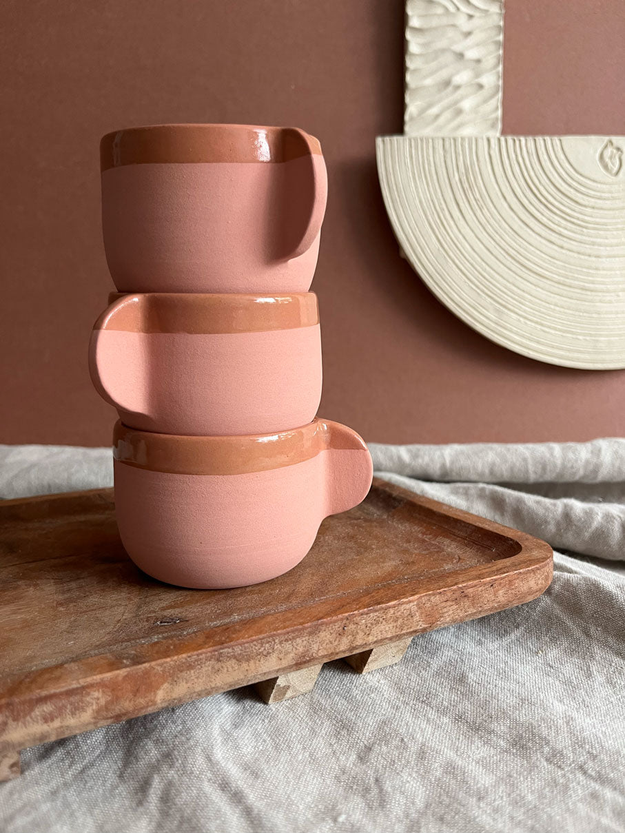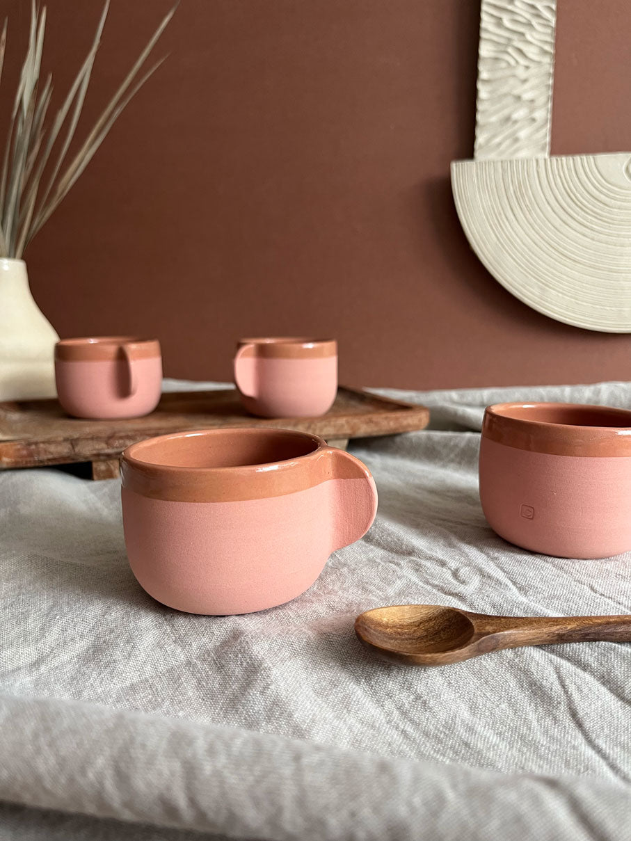 The Peaches Rounded Espresso brings a touch of earthy warmth to your espresso moments. With its gentle, curving form, this espresso cup feels comfortable and balanced in your hand, making each sip a cozy, satisfying experience. The matte peach exterior offers a grounded elegance, while the glossy terracotta interior and rim provide a smooth contrast, elevating the overall design.