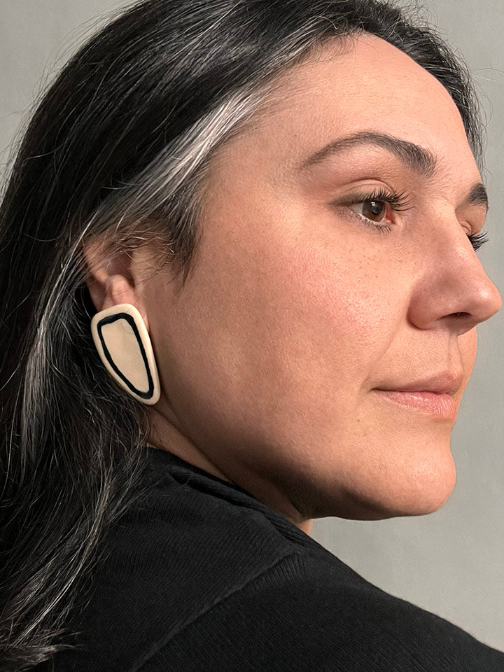 The Form: A sharp, tapered shard that acts as a graphic pointer for the face. The Flecha is a minimalist arrow that draws from ancestral indigenous silhouettes. It is a piece that commands focus, utilizing the high-contrast Tinta outline to emphasize its sharp, geometric trajectory.