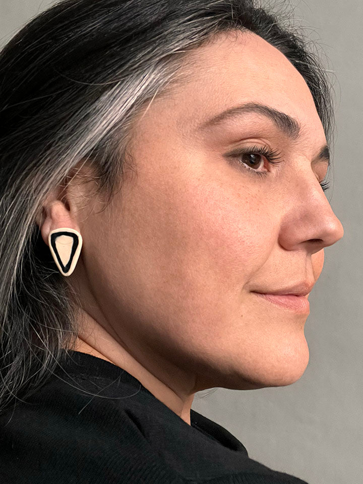 The Form: A sharp, tapered shard that acts as a graphic pointer for the face. The Flecha is a minimalist arrow that draws from ancestral indigenous silhouettes. It is a piece that commands focus, utilizing the high-contrast Tinta outline to emphasize its sharp, geometric trajectory.